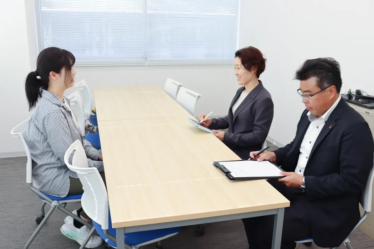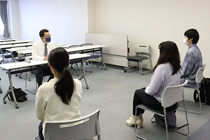 一人ひとりの希望に合わせた進路を叶えるために、キャリアセンタースタッフが希望職種・業務・経験などについてヒアリングします。 学生は、面談を重ねながらスタッフと一緒に考えを整理していき、目指す進路に向けて行動できるようになります。