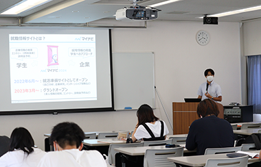 就職内定までのスケジュールや、就職活動の進め方を学び、「就活って何をしたらいいの?」の疑問を解決できるガイダンスを行っています。学生向け就活サイトの紹介、多彩なコンテンツの有効的な利用方法について学べます。