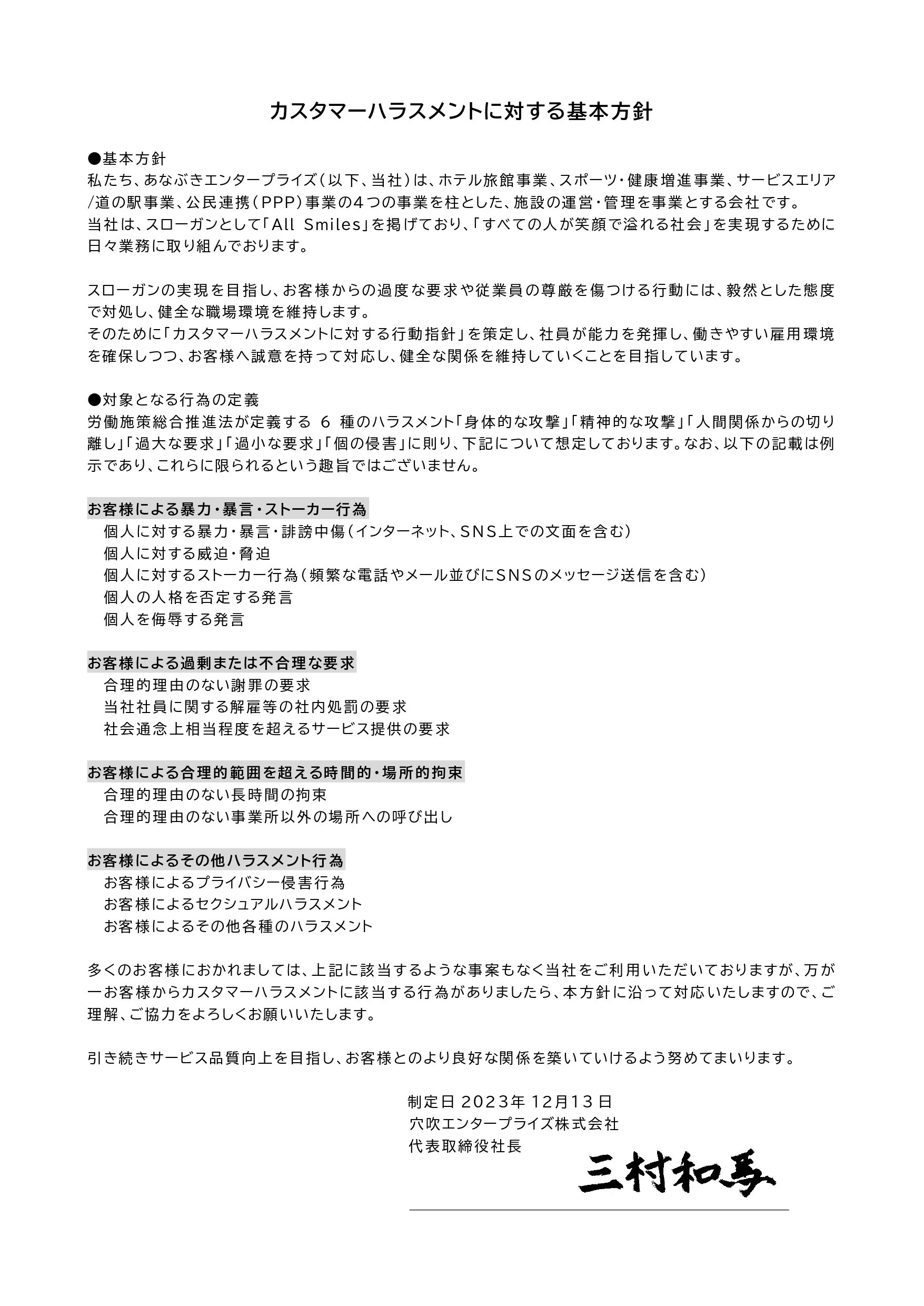 カスタマーハラスメント(通称:カスハラ)に対する基本方針について