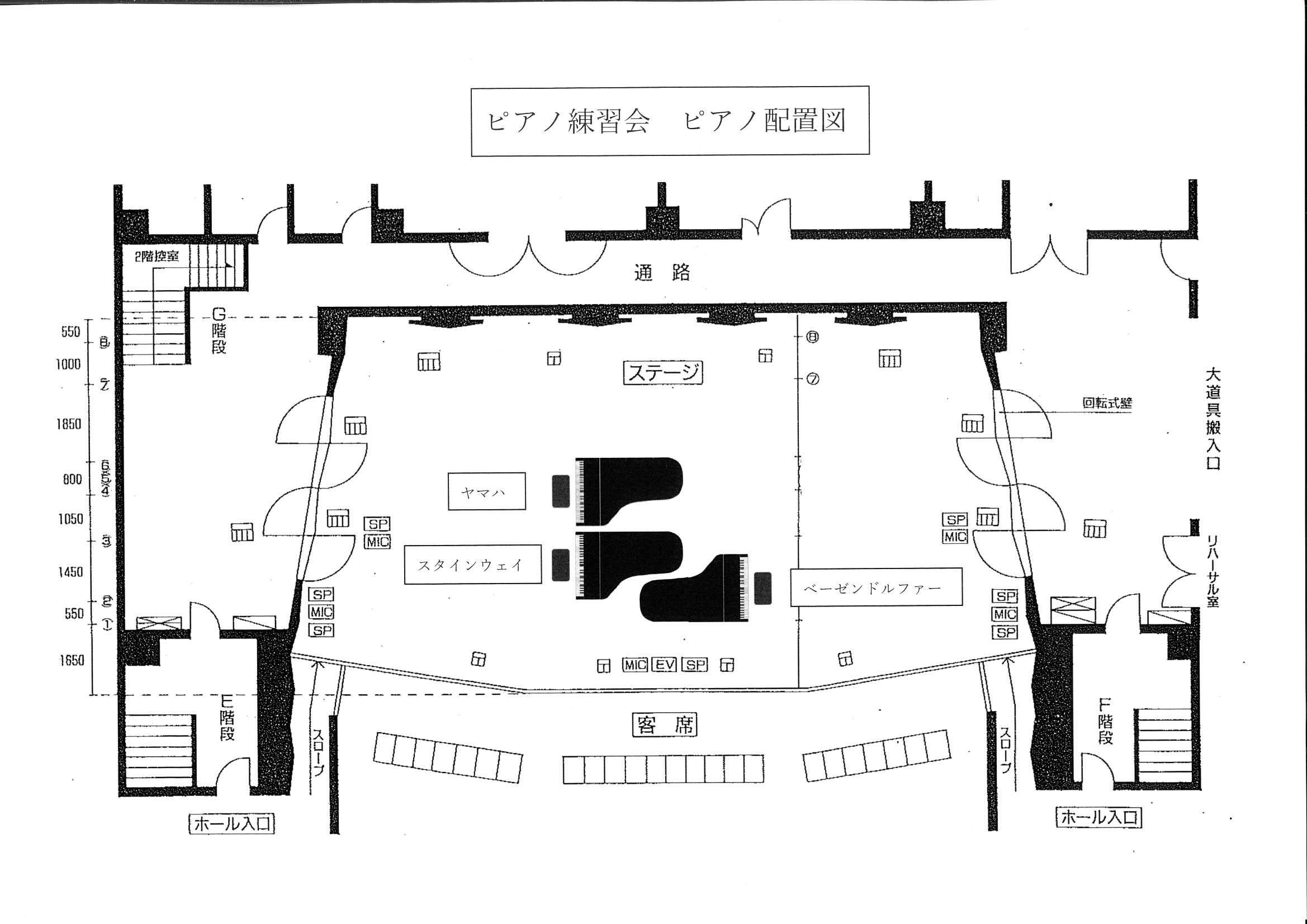 ※舞台下手手前にスタインウェイ、上手にベーゼンドルファー、下手奥にヤマハとなります。