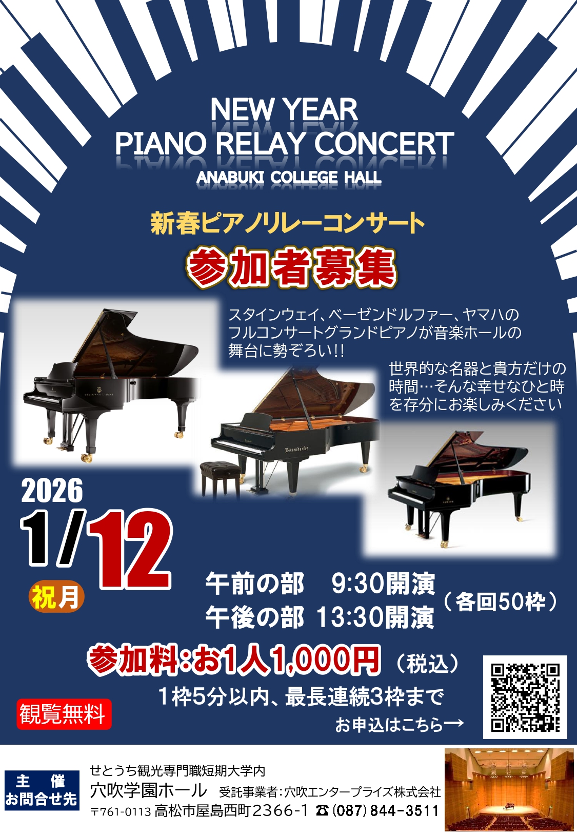 ◆ 申込時にいただいた個人情報につきましては、厳重に管理し、穴吹学園ホールのピアノ事業以外の目的では使用いたしません。