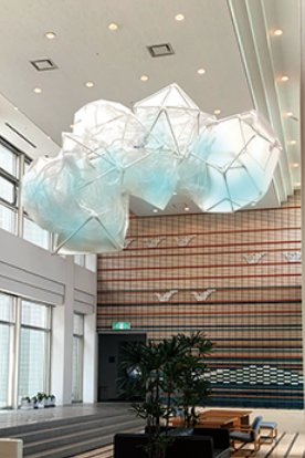 毎回異なる3回のワークショップを通じた段階的な取り組みを通じて、学生をはじめとする大学関係者、香川県の一般参加者の方との触れ合いながら感じたことや思い出を、空間にドローイングするイメージで制作した最後の作品をお披露目。