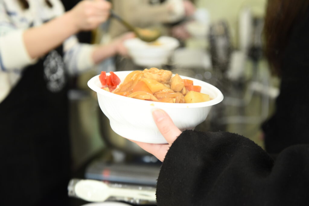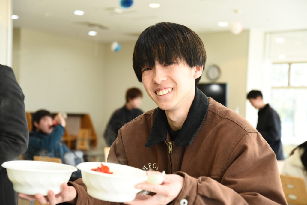 授業を終えた学生が集まって、自習室の空間に「いただきます」の声が広がりました。
