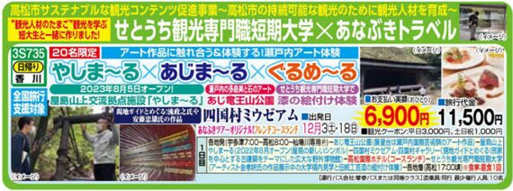 プロである担当者さんのご意見も参考に、「庵治竜王山公園→やしま―る→四国村→昼食(国際ホテルでコース料理)→学校で漆器体験」という具体的なコースが決まりました。2022年は瀬戸芸の開催年だったため、アート×持続可能な観光というコンセプトでうまくコースを組むことができました。その後、下見に行き実際にコースを回りましたが、初めて訪れる場所もあって、とても楽しかったです。