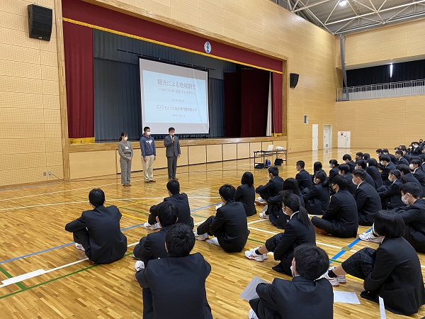 本日(12/20)、香川県立小豆島中央高校にて、本学学生2名が小豆島で行った実習の発表をしました。
