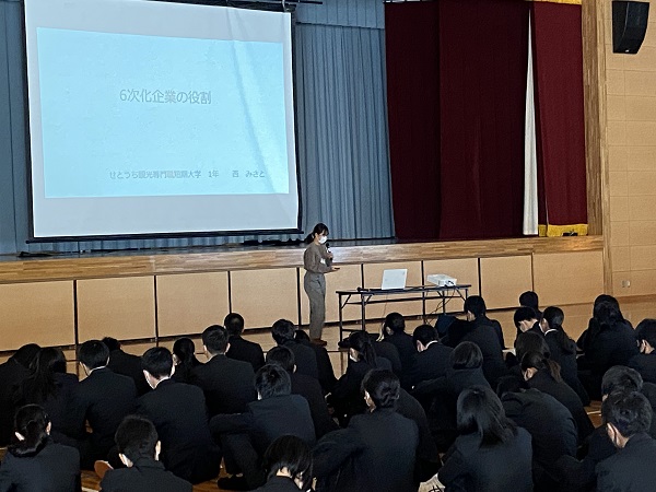 大勢の高校生を前に最初は緊張していましたが、堂々とした発表ができ、なかなかできないとても良い経験となりました。
