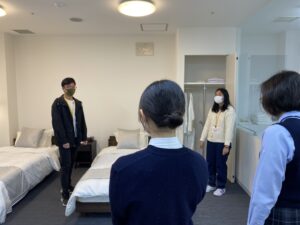 【キャンパスツアー】ホスピタリティ実習室を使った授業内容を学生が説明