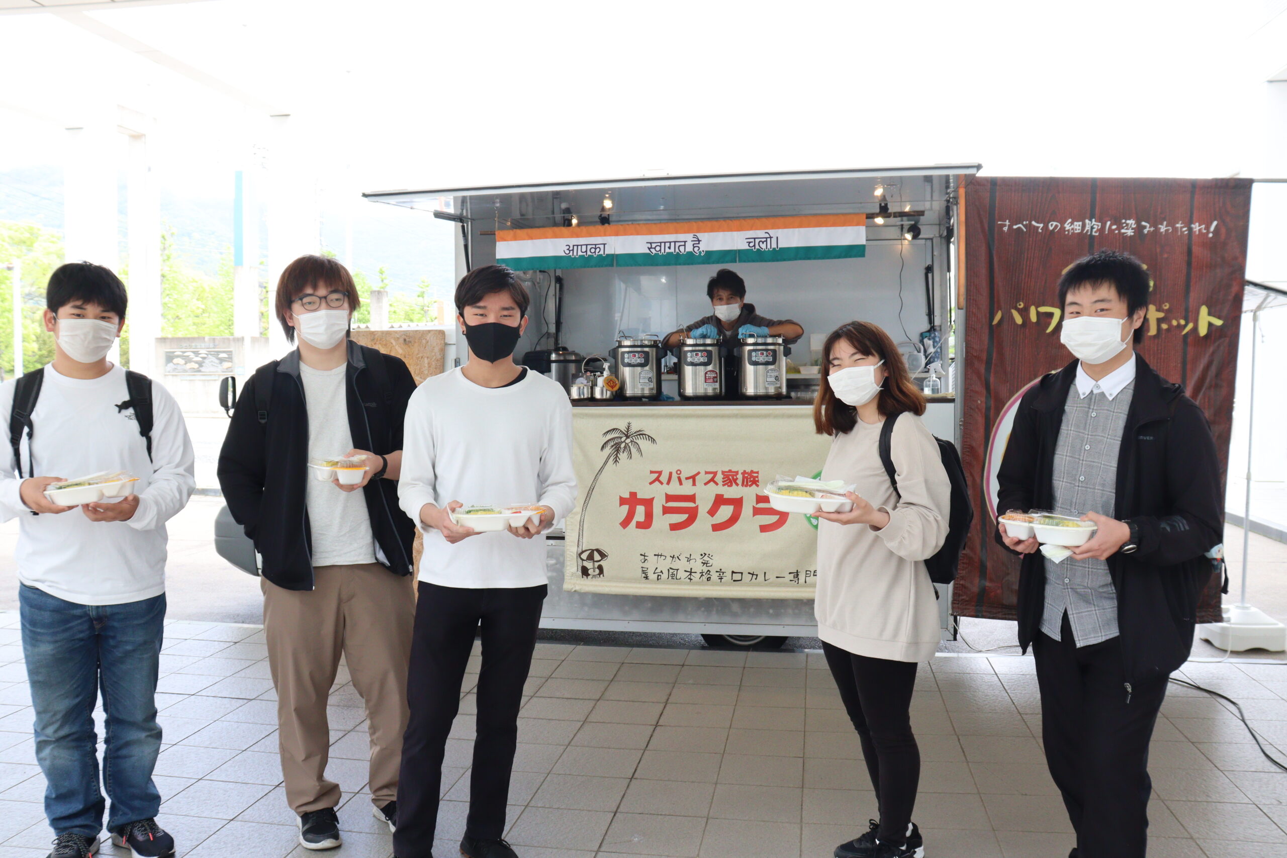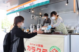 本格カレーを食べられると大人気のキッチンカー「スパイス家族カラクラ」さんが、学生のためにランチ時間にあわせて出店してくれました。