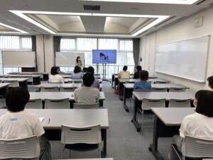 実習ライブ中継は、「福岡空港」(福岡)と「MaiPAM」(小豆島)の2ヶ所とZoomでつなぎ、実習先の方からの施設紹介と、学生にインタビュー形式で実習内容や実習先での生活などを答えてもらいました。