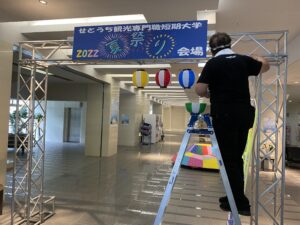 明日に向けて会場設営中