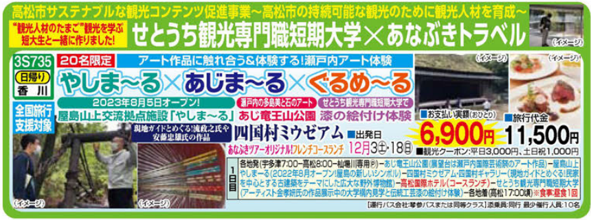 高松市サステナブル観光コンテンツ促進事業の一環として、「あなぶきトラベル」×「せとうち観光専門職短期大学」のコラボツアーを企画しました。