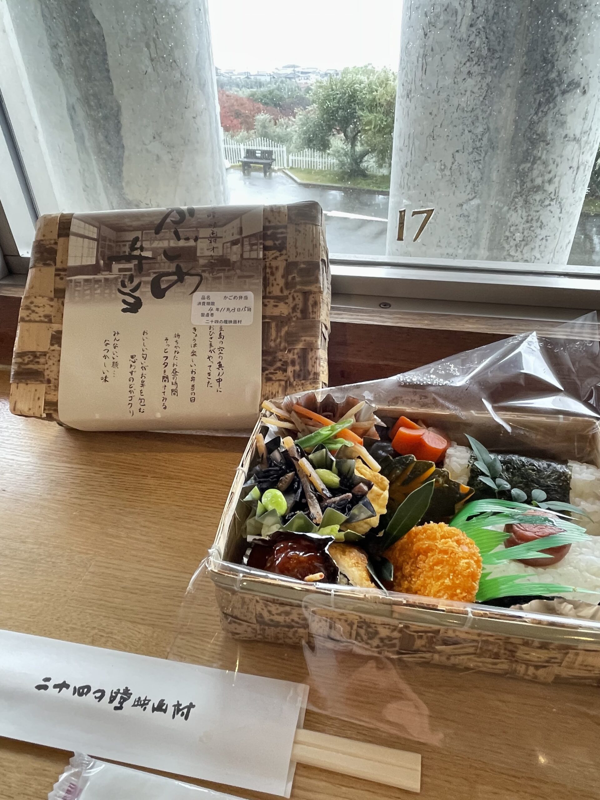 小豆島の特産品を使った二十四の瞳映画村オリジナル弁当「竹籠入り かごめ弁当」