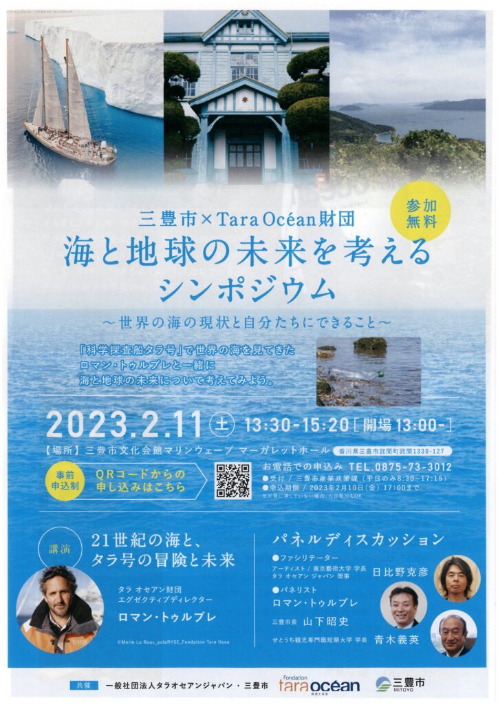 三豊市と(一社)タラオセアンジャパンの共催で、「海と地球の未来を考えるシンポジウム~世界の海の現状と自分たちにできること~」が2/11(土)に開催され、青木学長がパネリストとして参加します。