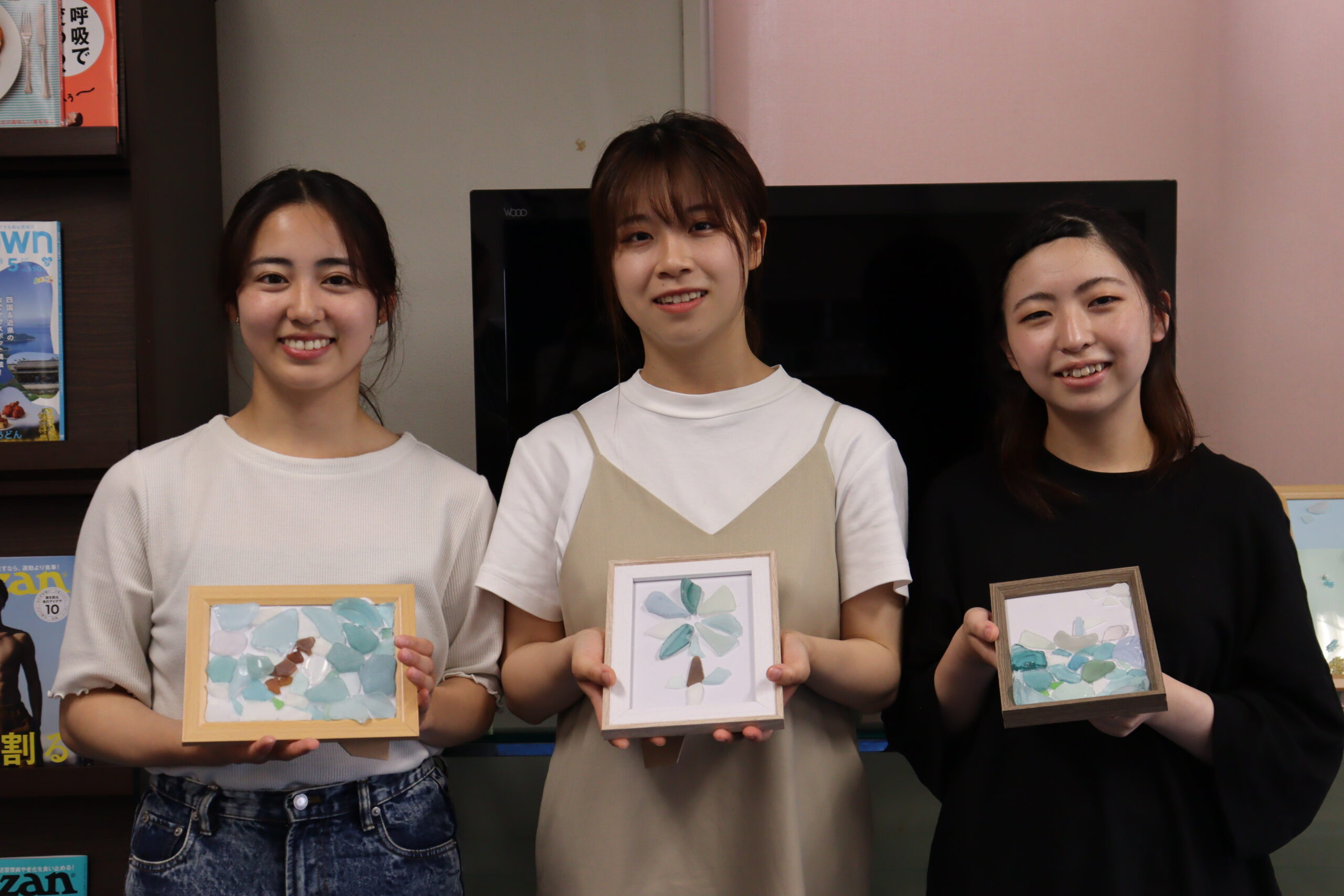 シーグラスを使った作品の作り方を教わりました