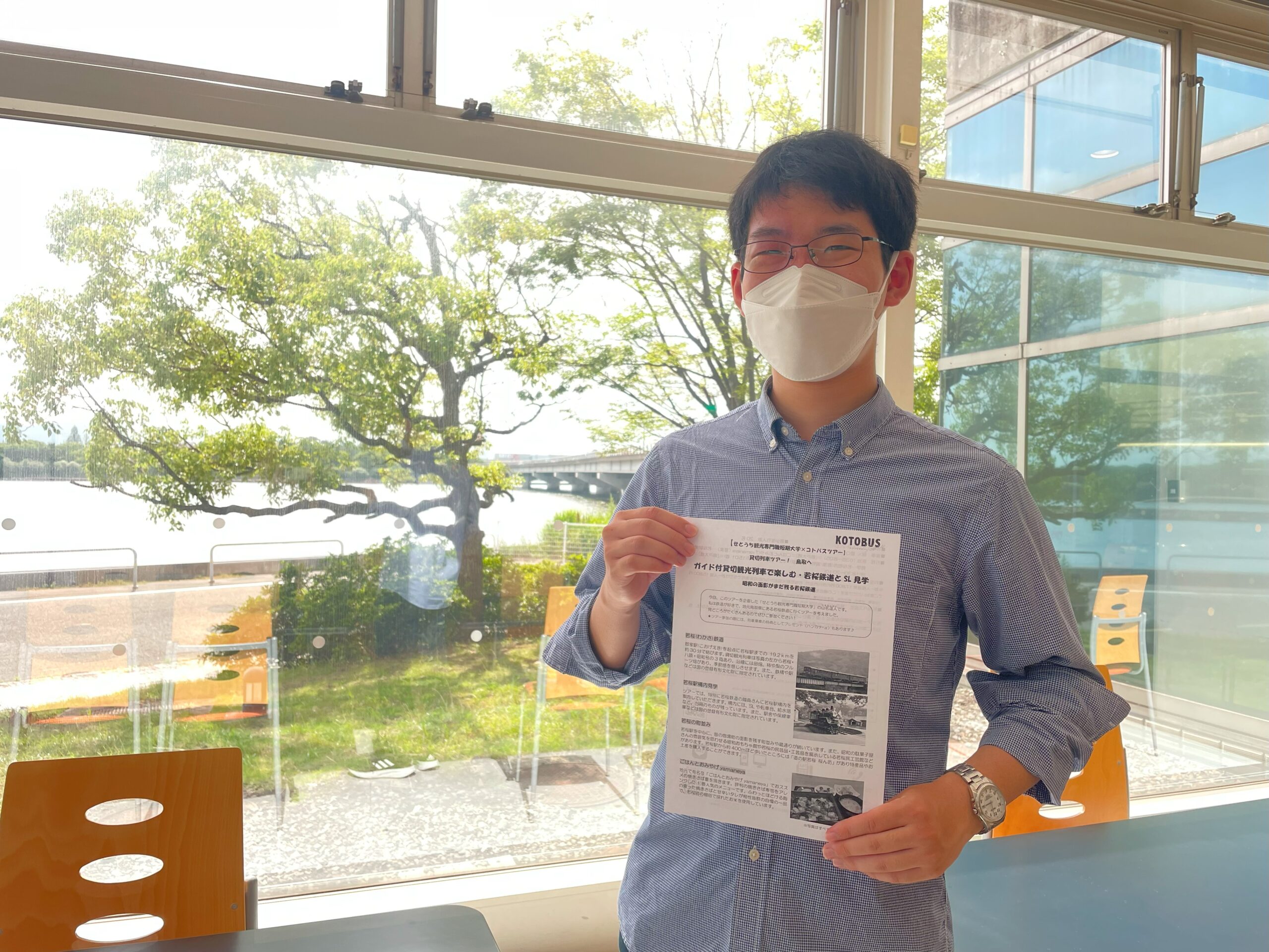 「私は鉄道が好きで、地元鳥取県にある若桜鉄道に行くツアーを考えました。見どころがたくさんあるのでぜひご参加ください!ツアー参加の際には、列車乗車の特典としてプレゼント(ハンカチ+α)もあります!」