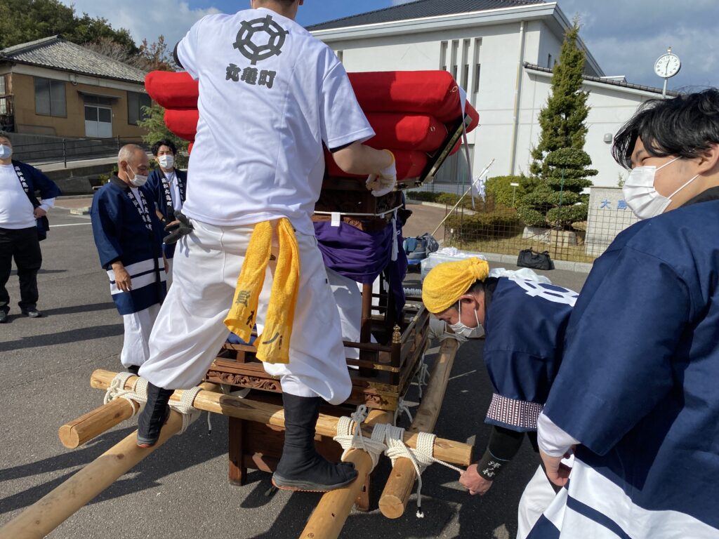 商店街の皆さんが慣れた手つきでちょうさを組み上げていきます