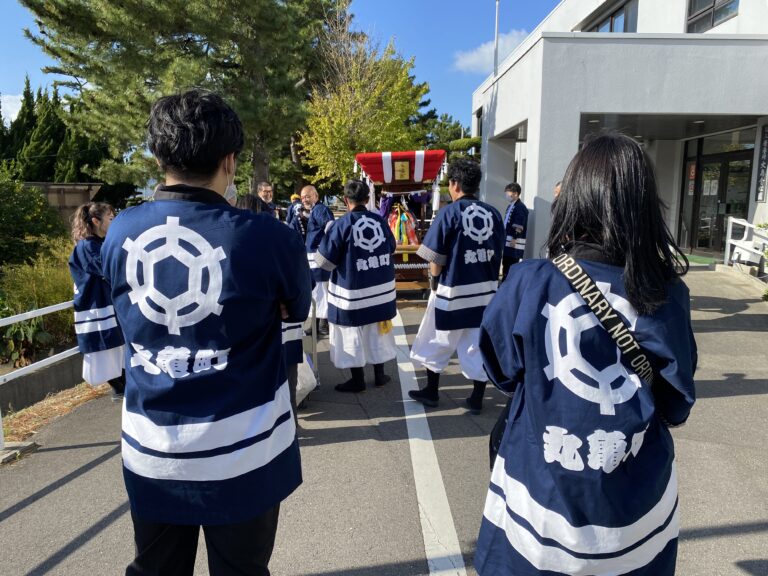 青松園敷地内の数カ所でちょうさを担ぎ、参加させていただいた学生と教職員も普段できない貴重な経験をさせていただきました。