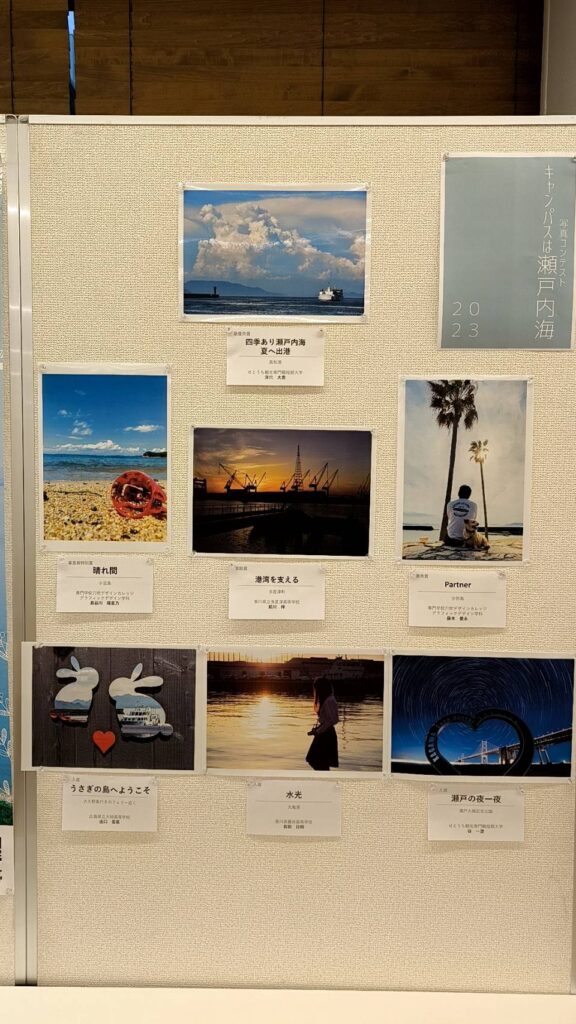 一般社団法人四国カメラ部主催の「四国カメラ部写真展」にせと短の展示スペースを設置し、せと短写真コンテスト2023「キャンパスは瀬戸内海」の入賞作品を展示しています。