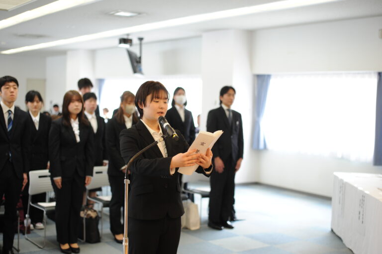 新入生宣誓では、新入生を代表して上野さん(高松工芸高校出身)が、