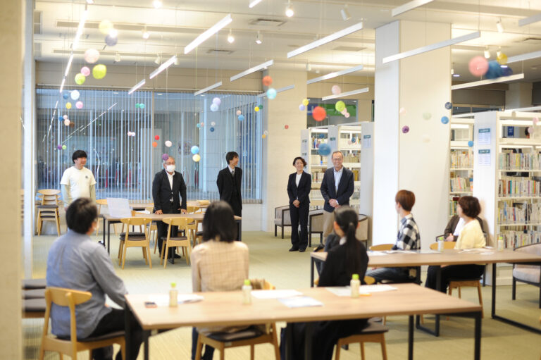 まずは、本学の図書館へ集合し、今日の流れをお伝え~内田学科長よりご挨拶