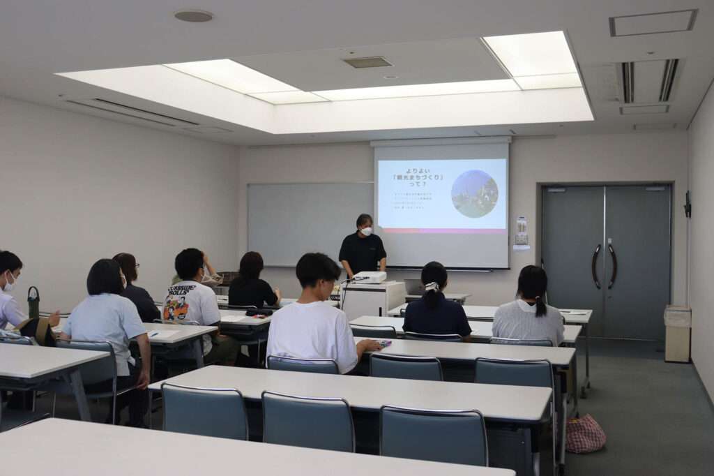 続いて、体験授業を選択された方は田保教授の「よりよい観光まちづくりって?」の講義を受けていただき