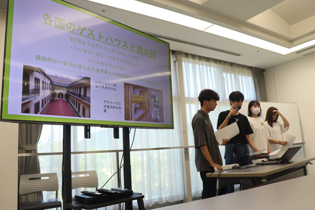実際に観光施設を訪問し、施設の特徴や設立の背景、どんな思いで運営されているのかを、そこで働く方々から直接お聞きしたことをパワーポイントでまとめ発表をしました。