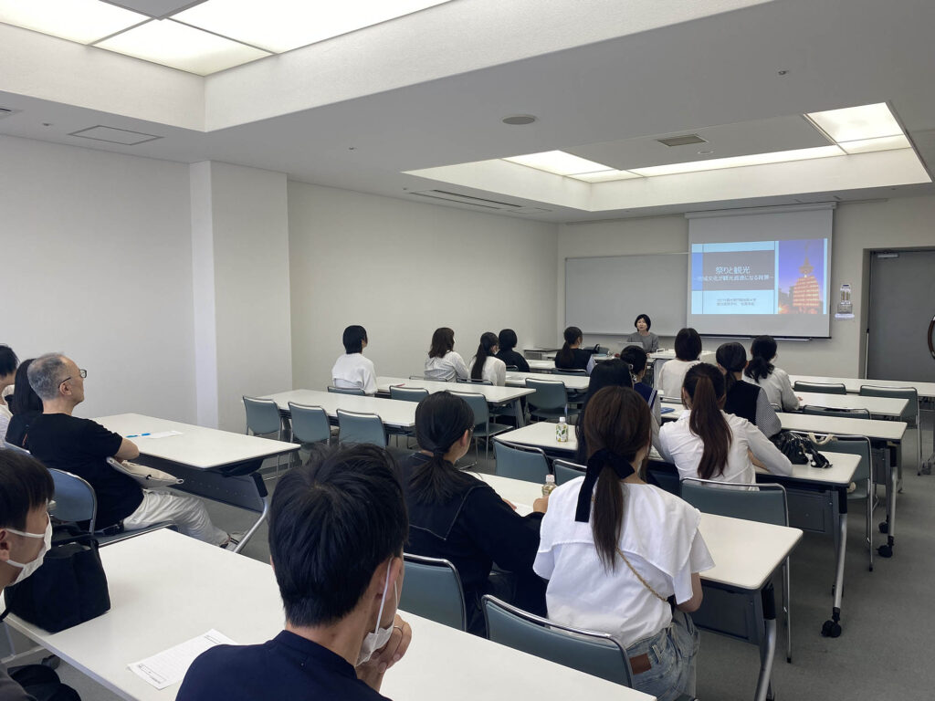 高校1、2年生は松尾先生の模擬講義を受講し(地域のお祭りや民謡と観光の繋がりについて)