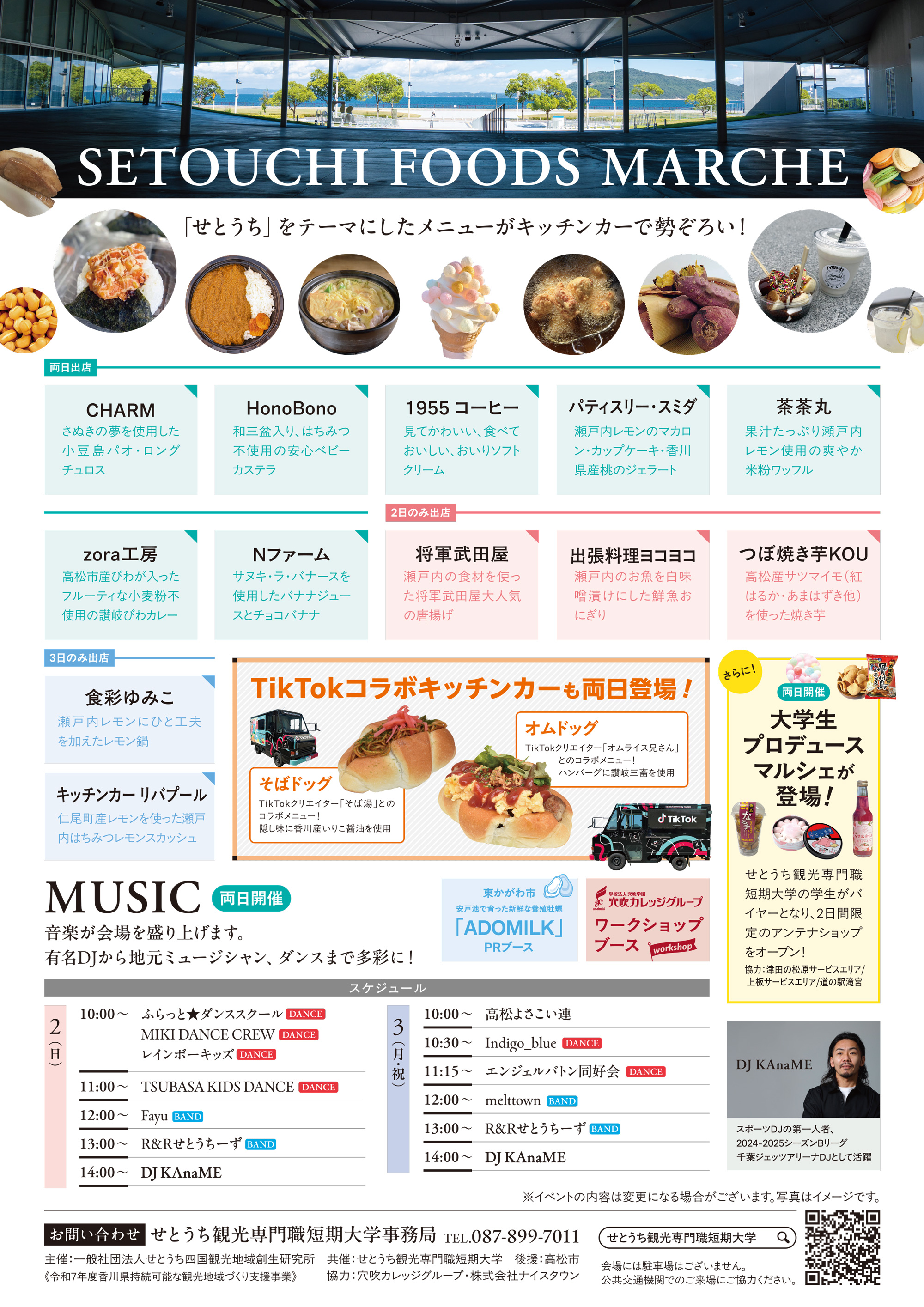 ■内容:せとうち観光専門職短期大学の学生がバイヤーとなり、2日間限定で四国のアンテナショップをオープン。学生や教員によるバンド演奏も予定しています