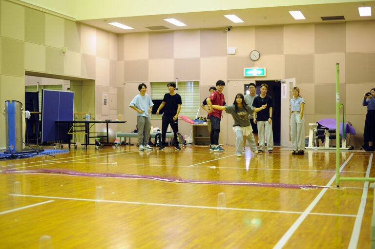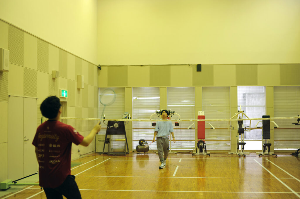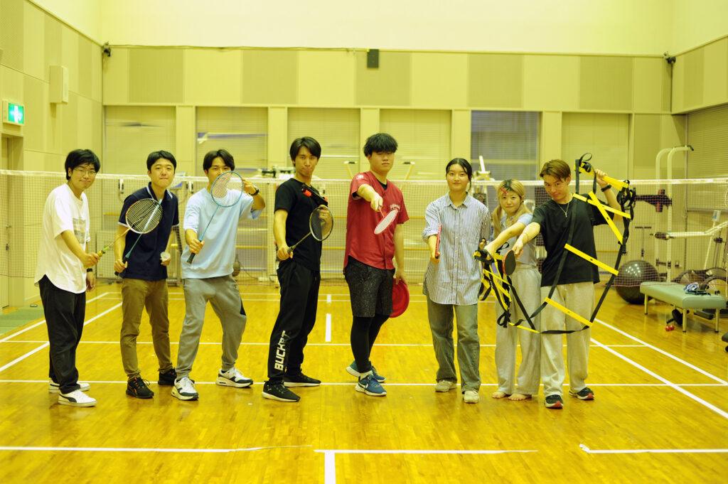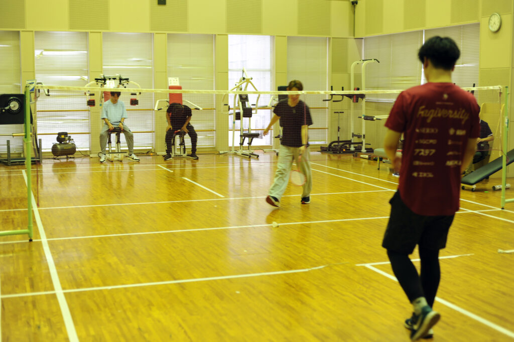 第3クォーター開始と同時に、サークルも活動を再開しています。先日はスポーツサークルがキャンパス内にあるトレーニングルームにてバドミントンとフリスビーで体を動かしていました。