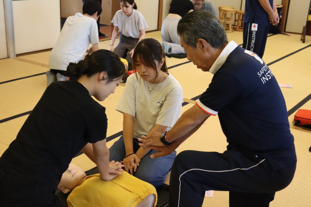 実際に倒れている人を発見したときの声掛けの方法や、胸骨圧迫が必要かどうかの確認手順なども学びました。
