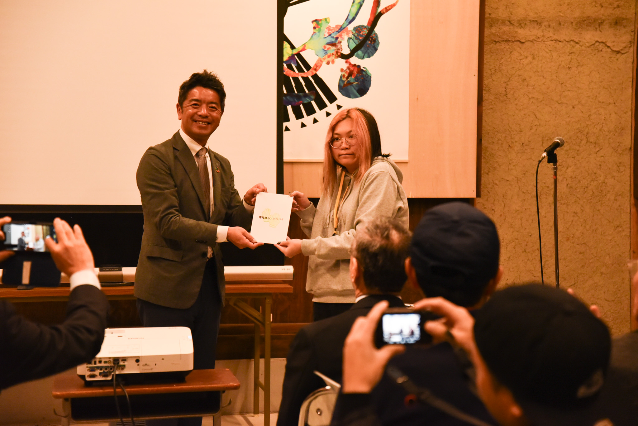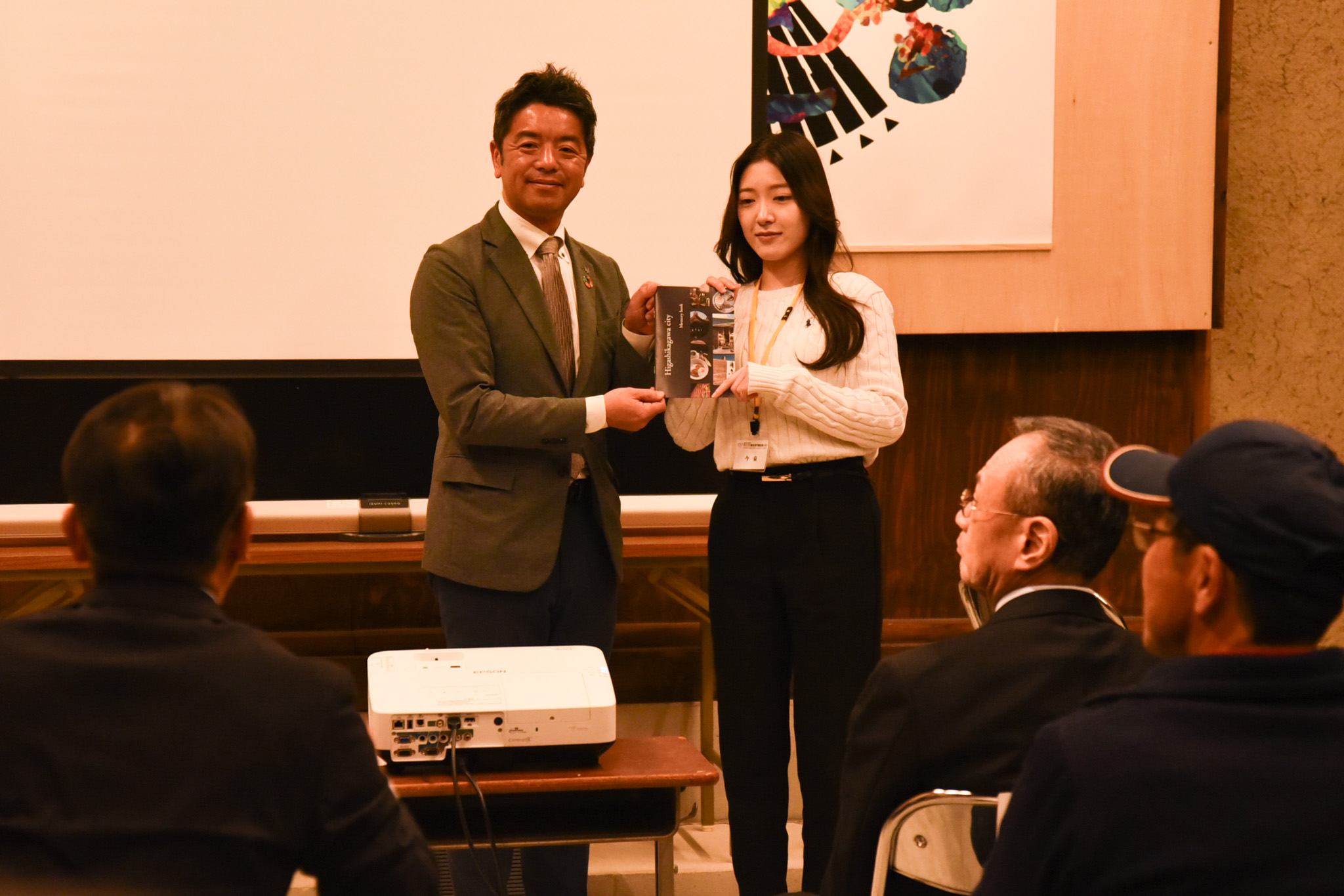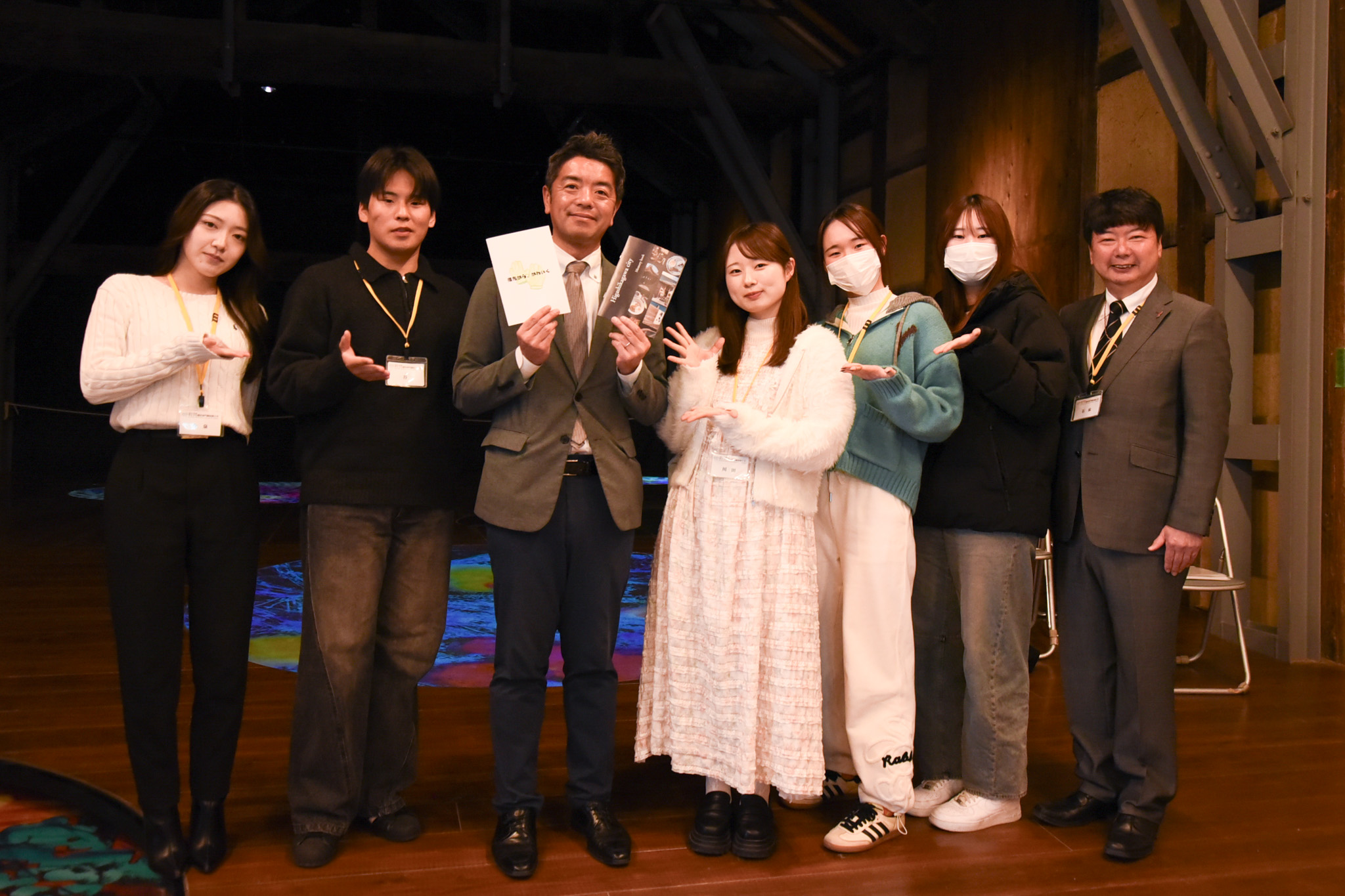 2026年2月26日、石床ゼミの学生が取り組んだ東かがわ市の「産業」と「食」をテーマにした2種類のパンフレットを東かがわ市に贈呈しました。