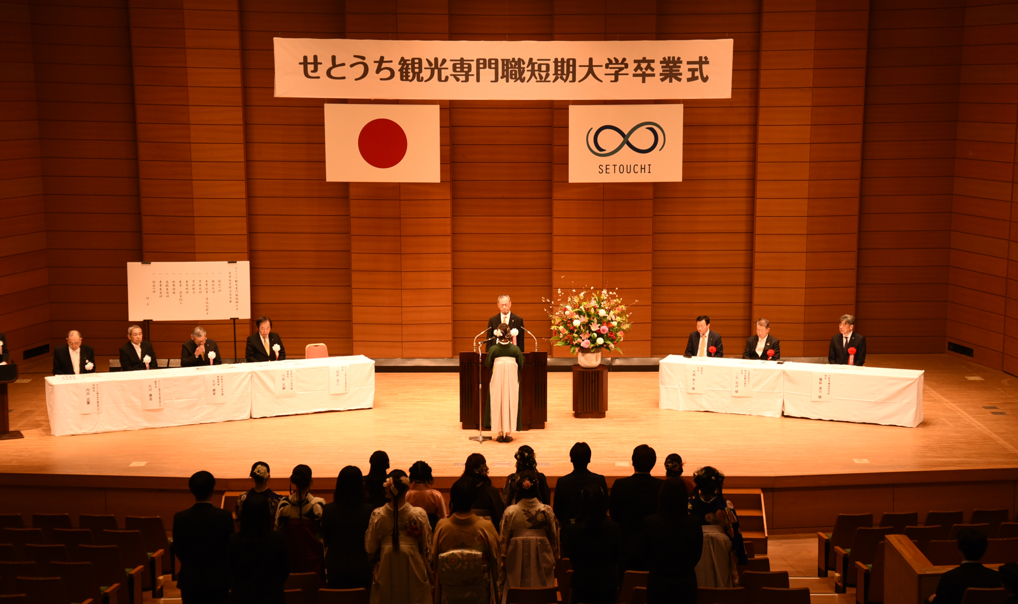 3月19日木曜日、穴吹学園ホールにてせとうち観光専門職短期大学第3期生19名の卒業式が執り行われました。